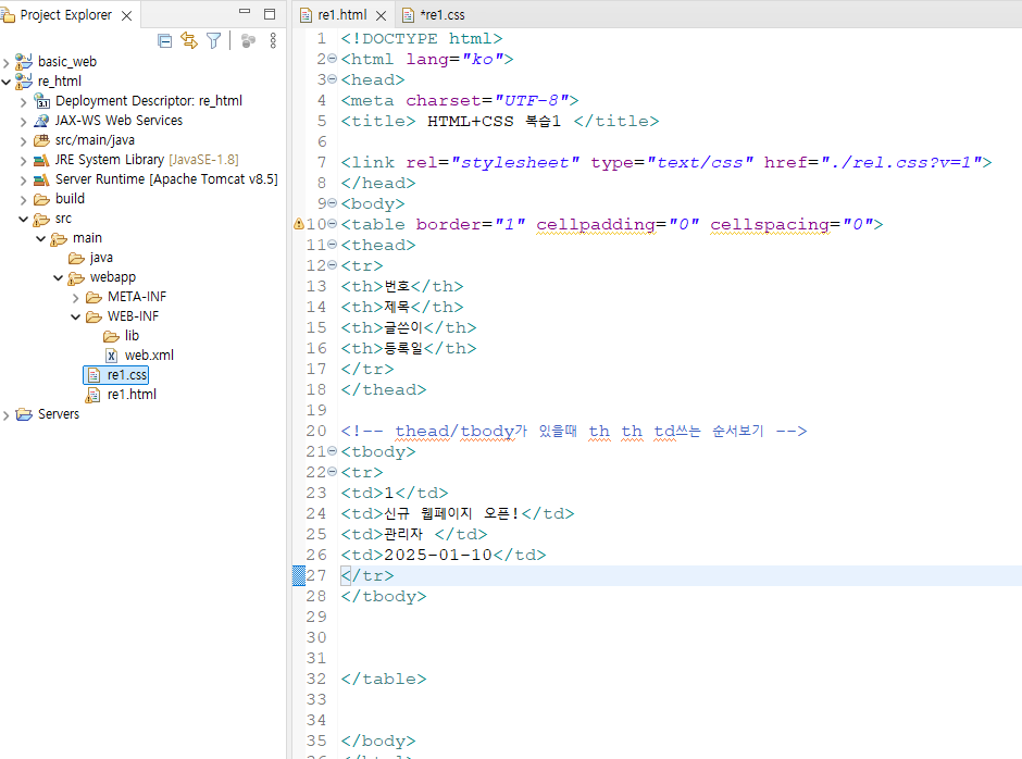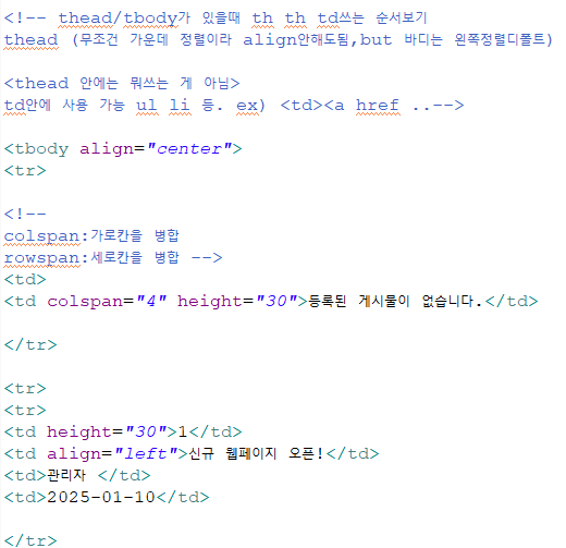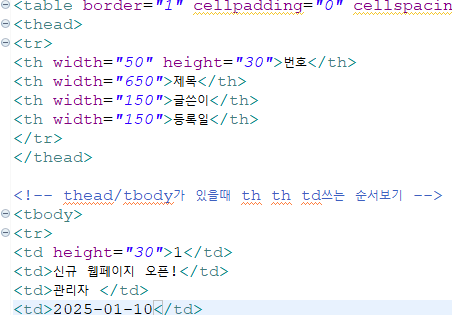 thead/tbody가 있을때 th th td쓰는 순서보기